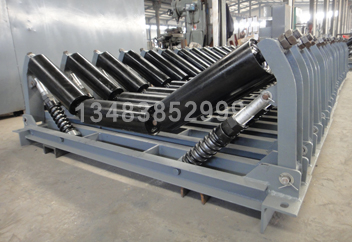以壓力彈簧為緩沖力源,利用壓力彈簧被壓縮時(shí)會(huì)隨高度的降低而彈力遞增的性能,使托輥組可隨著所受沖力的增大而緩沖彈力遞增,能有效的抵消物料下落的沖擊力,起到保護(hù)膠帶的作用。(專利號(hào):ZL94247277.2