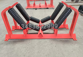帶式輸送機(jī)緩沖托輥組安裝在輸送機(jī)受料段的下方,減小落料時(shí)物料對(duì)輸送帶的沖擊,以延長輸送帶的使用壽命。